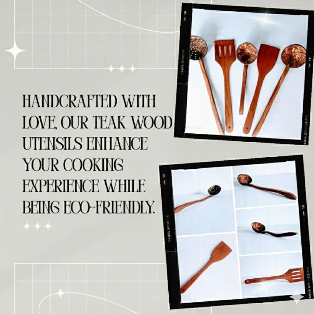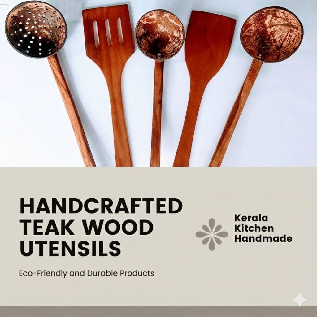 Handcrafted using high-quality teak wood and coconut shell. 100% natural, sustainable & biodegradable. Made with love in Kerala 💚